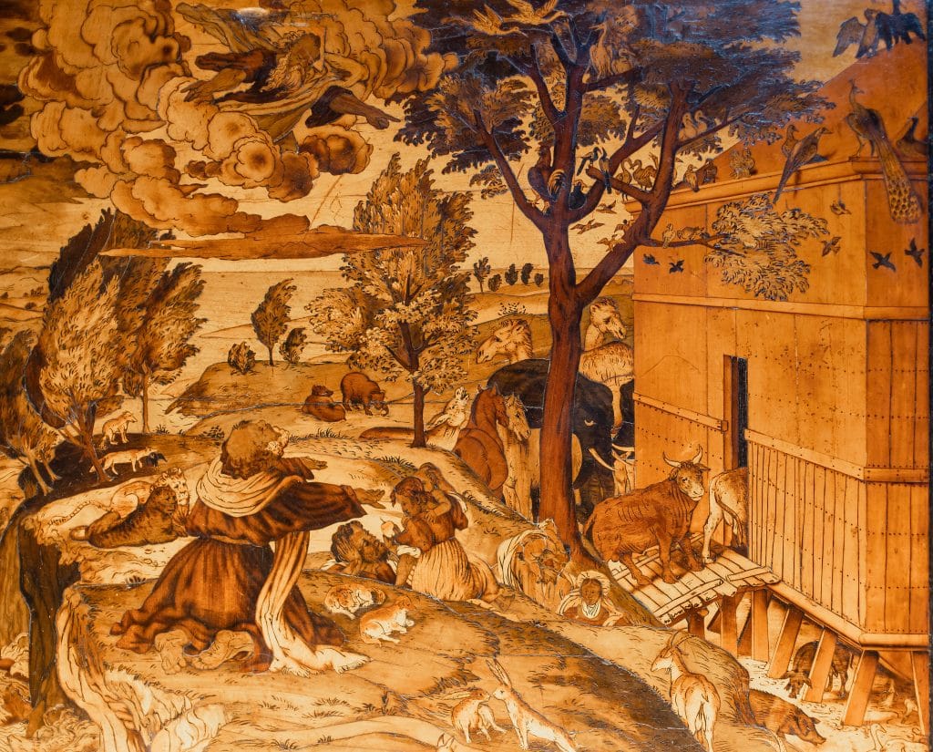 Secondo la tradizione biblica, Dio, deluso dalla corruzione dell’uomo, decise di purificare il mondo con quaranta giorni e quaranta notti di pioggia. Solo Noè, descritto come giusto e fedele, fu scelto per sopravvivere e per garantire la continuità della vita. Su indicazione divina costruì un’enorme imbarcazione, l’Arca, destinata ad accogliere la sua famiglia e una coppia di ogni specie animale. Quando le acque si ritirarono, l’Arca si sarebbe posata sul monte Ararat, in Anatolia, segnando la fine del diluvio e l’inizio di una nuova era per l’umanità.