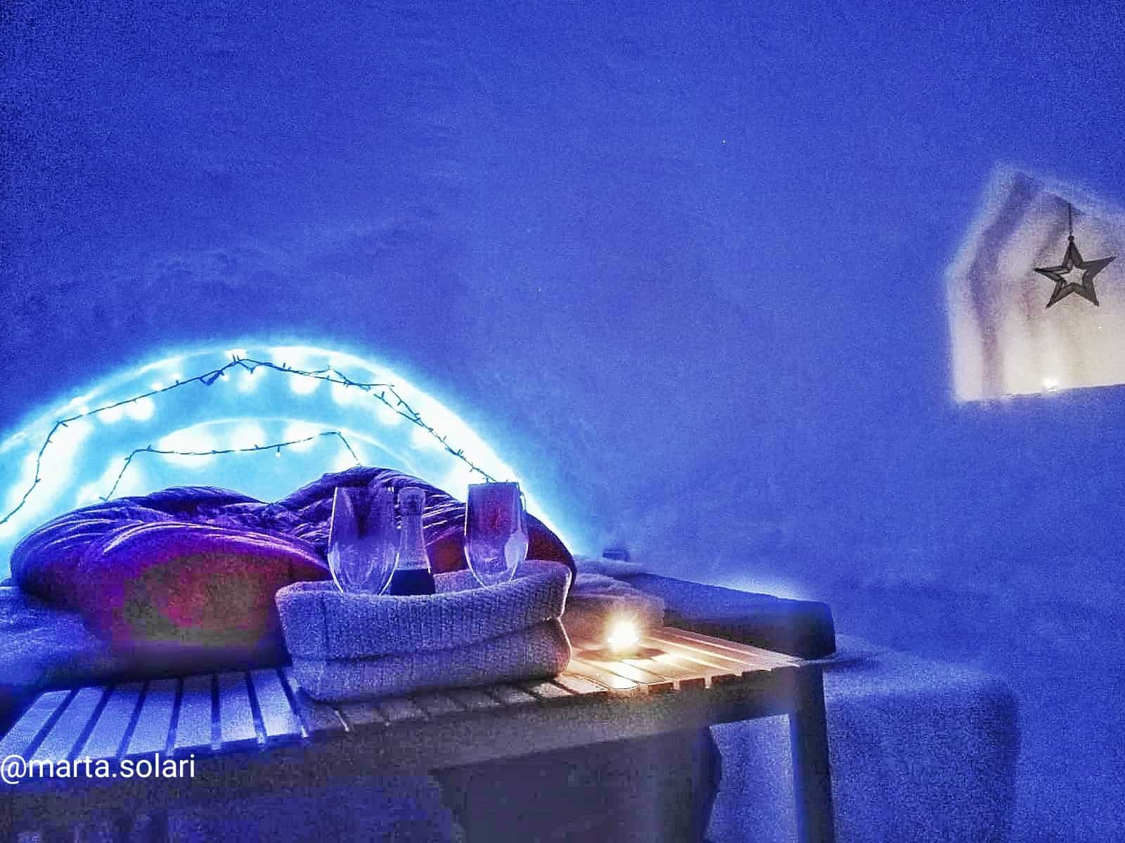 Ok, lo ammetto, il freddo indubbiamente non è trascurabile, ho dormito con sciarpa e cappello, termica e calzamaglia, ma quando l’alba ha illuminato la porticina dell’igloo, e la sua luce rosa vi è penetrata attraverso, non c’era più spazio per i rimpianti, tutto ne è valso la pena, anche il rischio di vedere il naso staccarsi dalla faccia.
